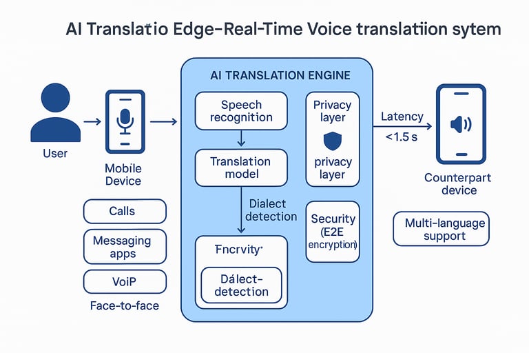 Our system incorporates special data processing algorithms designed to enhance confidentiality. Some of the translation happens directly on your device, while other parts are end-to-end encrypted before being sent to the server. This approach reduces the likelihood of private information leaks and generally increases the security of AI Translate Edge.